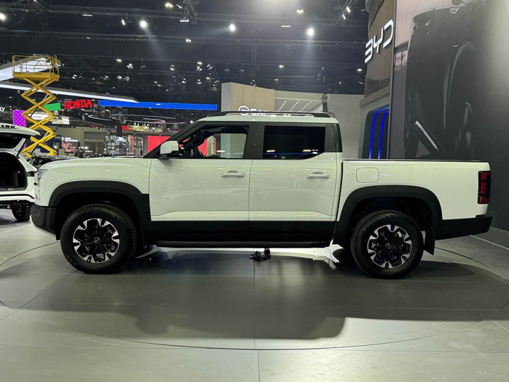 外形上,SHARK(鲨鱼)皮卡的造型看着也比较大气,而且它还支持获取Apple设备的NFC功能,只需通过手机即可解锁车辆。尺寸上,新车长宽高分别为5457/1971/1925mm,轴距为3260mm;接近角和离去角分别为31°和19.3°,满载离地间隙为210mm。