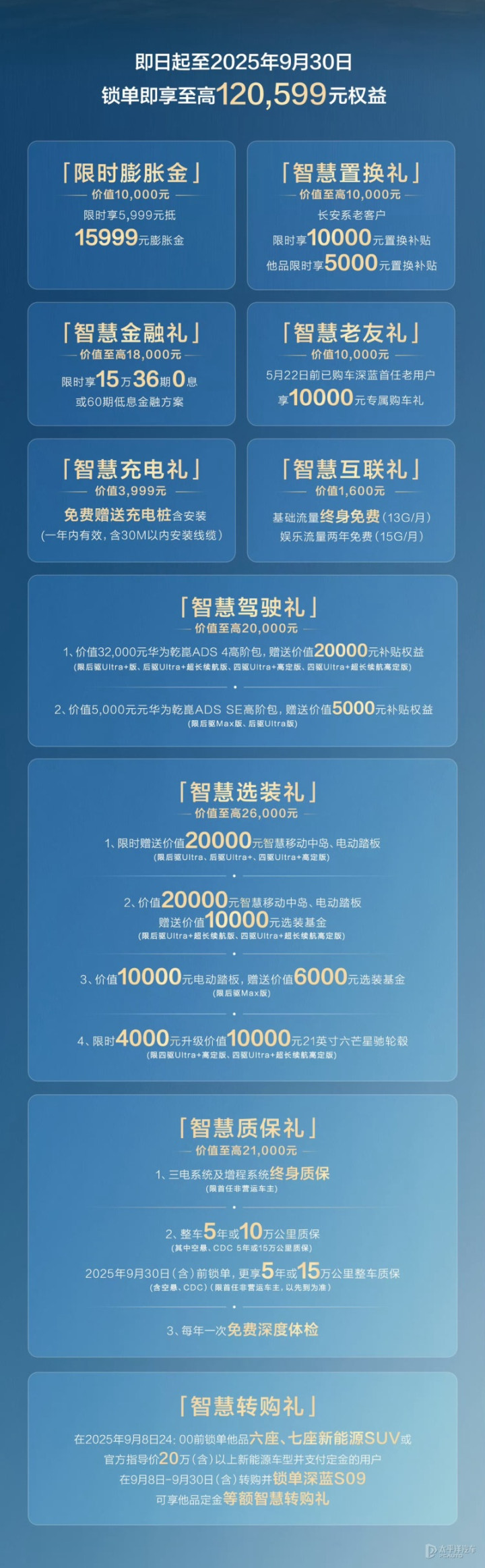 深蓝S09超长续航超充版指导价车型售价(万元)后驱Ultra+超长续航版27.99四驱Ultra+超长续航高定版30.99